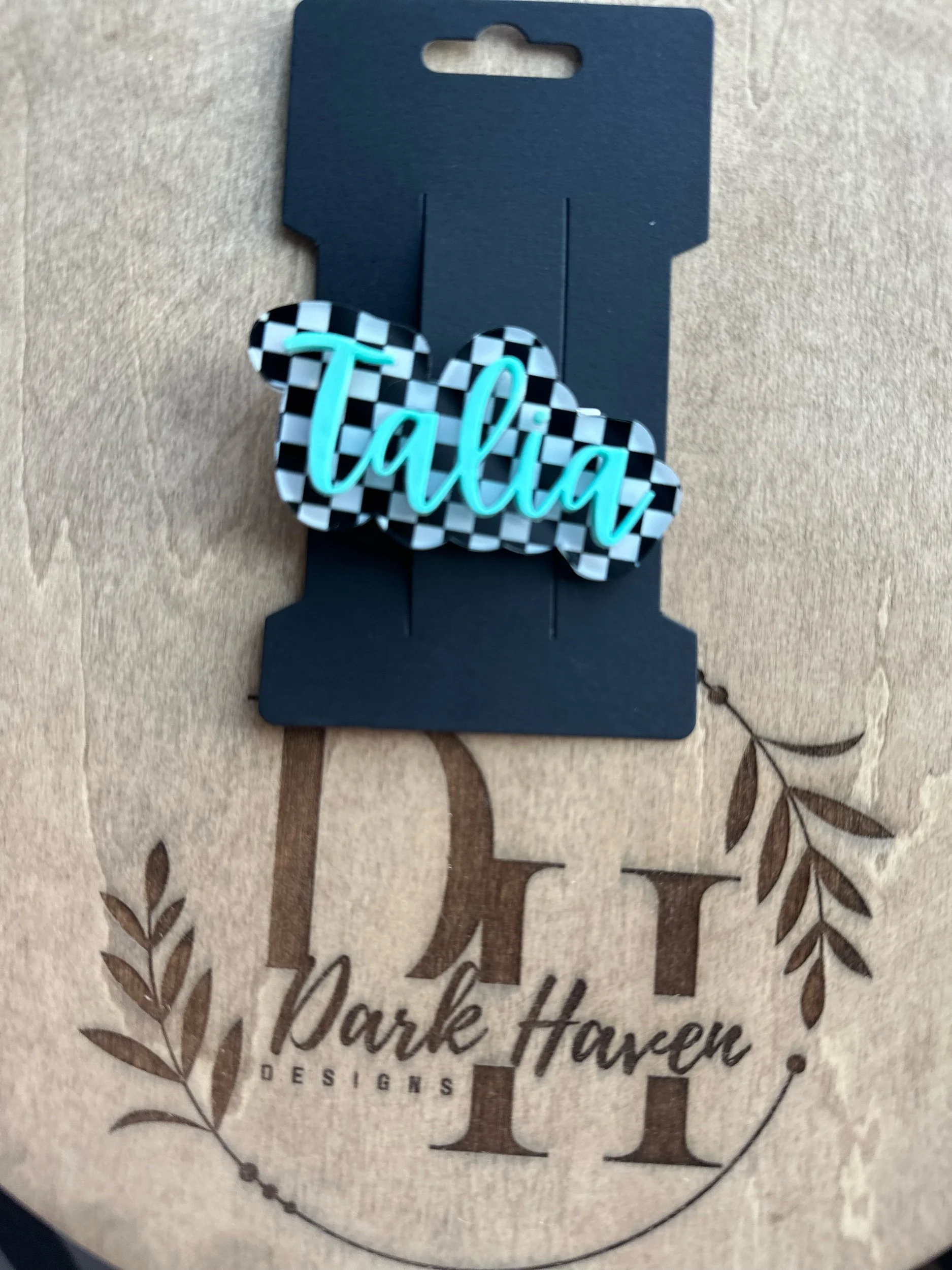 Shop Categories: All Ready To Ship Home Decor Clips All | Ready To Ship | Home Decor | Clips | Ghost Pigtail Clips $14.00 Custom Business Sign $150.00 Checkered Name Hair Clip $14.00 Checkered Lightning Bolt Clips $14.00 Lightening Bolt Set $14.00 Patriotic Heart Set $14.00 Patriotic Star Set $14.00 Aztec Claw Clip from $12.00 A love as True Sign $65.00 Magnetic Toolbox Labels $32.99 Personalized Hair Clip from $12.50 Personalized Piggy Clips $16.00